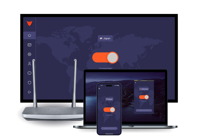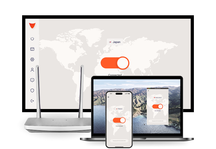 Наши приложения одним нажатием кнопки устанавливает зашифрованный туннель до наших серверов в выбранной стране.
